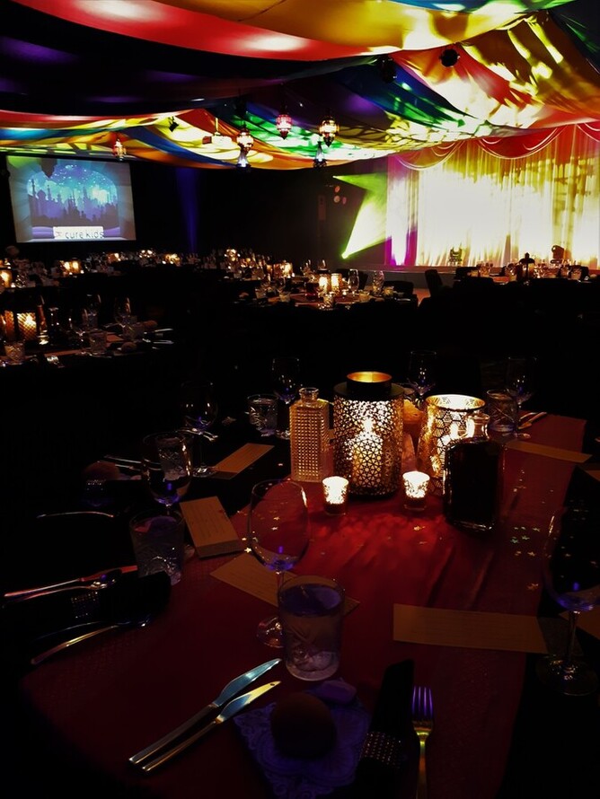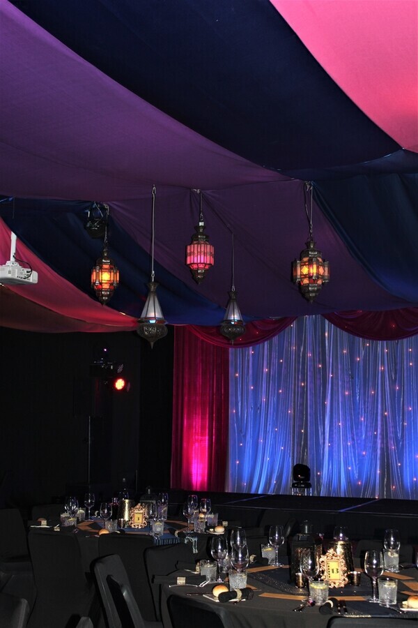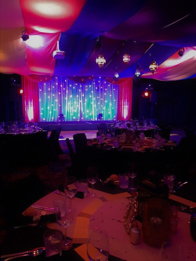 Arabian Nights was an epic theme to be a part of, and we loved being involved in the design and execution of such a different theme. Bright fabrics, elegant lighting and bursts of colour came together for a magical evening. Working once again with AMJAZZ Dance Studios for the entertainment.