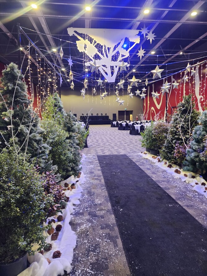 The entrance welcomed students with a lovely snowy, tree-lined walkway topped with shimmering stars above, setting a magical tone right from the start.
